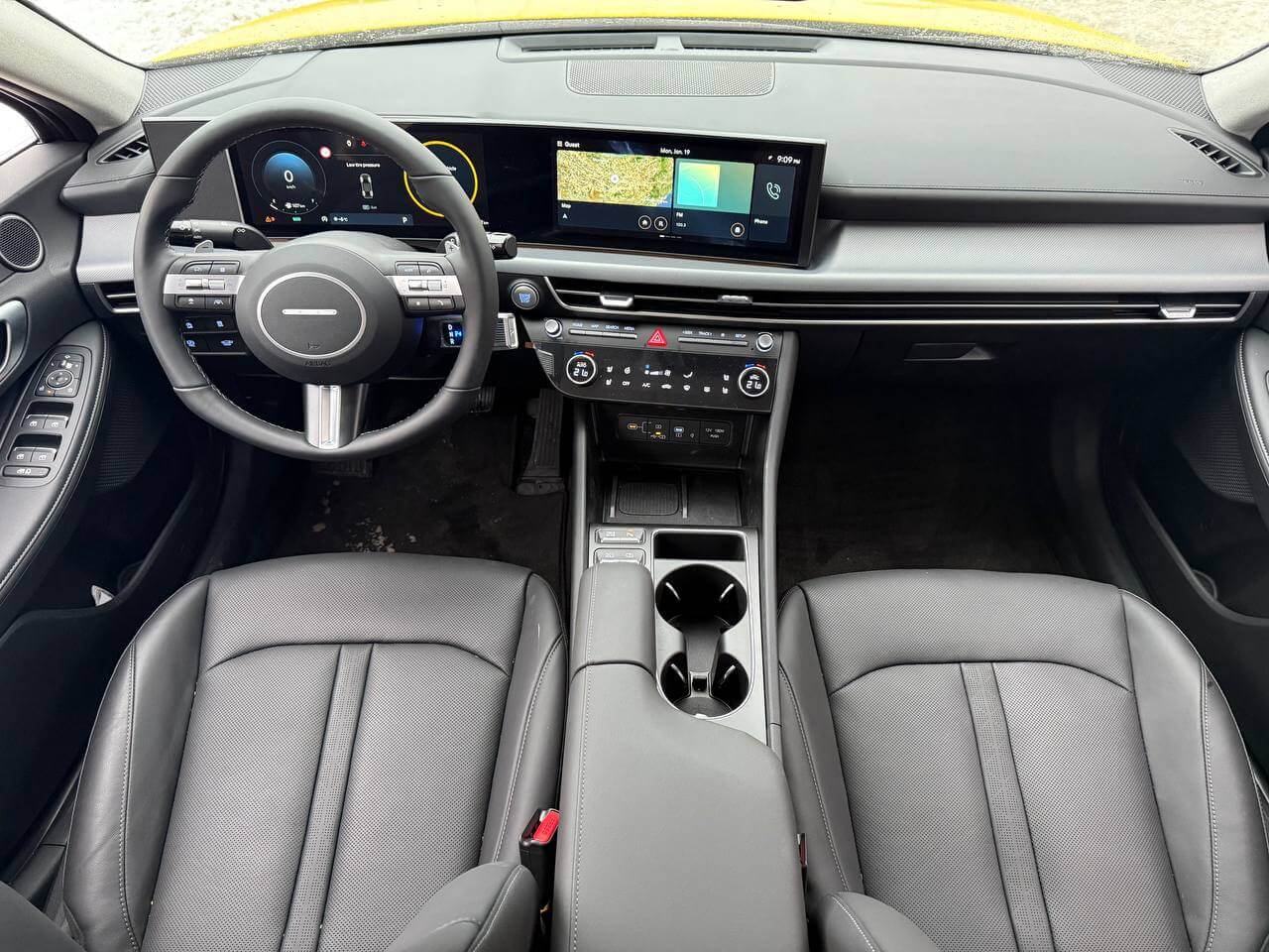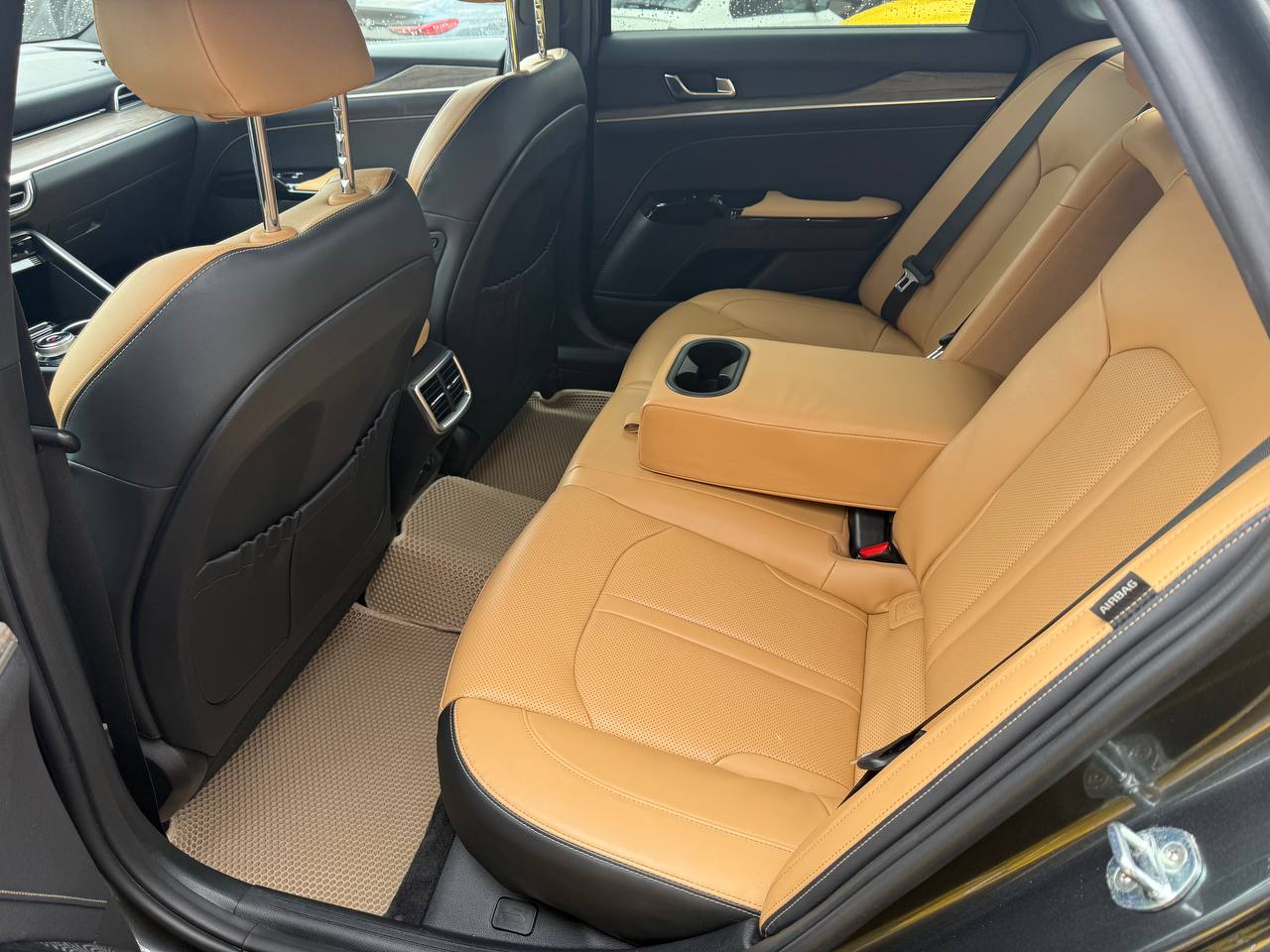 Топовая комплектация Flagship: Отделка интерьера и сидений чёрной экокожей, Обивка потолка чёрного цвета, Система интеллектуального управления дальним светом фар (IHBC), Регулировка руля по высоте и по вылету, Двухзонный климат-контроль, Подогрев передних и задних сидений, Электрообогрев лобового стекла и форсунок омывателя, Обогрев рулевого колеса, Вентиляция передних сидений, Сиденье водителя с электрорегулировкой в 6 направлениях, Сиденье переднего пассажира с электрорегулировкой в 4 направлениях, Цифровая приборная панель диагональю 10,2″, Мультимедийная система с сенсорным экраном диагональю 13,2″ с Bluetooth, Премиальная аудиосистема с 12 динамиками, включая индивидуальные динамики в подголовнике водителя, Функция дублирования экрана смартфона на мультимедийном дисплее, Разъемы USB (4), Передние и задние датчики парковки, Система камер кругового обзора 360°, Адаптивный круиз-контроль (ACC), Система удержания автомобиля в полосе движения (LKA), Система распознавания дорожных знаков (TSI), Ассистент движения по автомагистрали (HWA), Дистанционный запуск двигателя кнопкой на ключе, Система мониторинга давления в шинах (TPMS), Бесключевой доступ со стороны двери водителя и переднего пассажира, кнопка запуска двигателя, Функция бесконтактного открывания крышки багажника, Датчик дождя, Датчик света.
